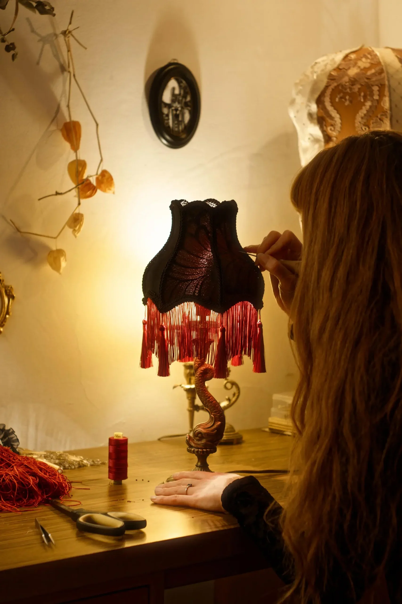 Lorsque l’ensemble est validé, je commence la fabrication de votre pièce. Chaque abat-jour est réalisé à la main, avec une attention particulière portée aux détails et à la qualité de la lumière.